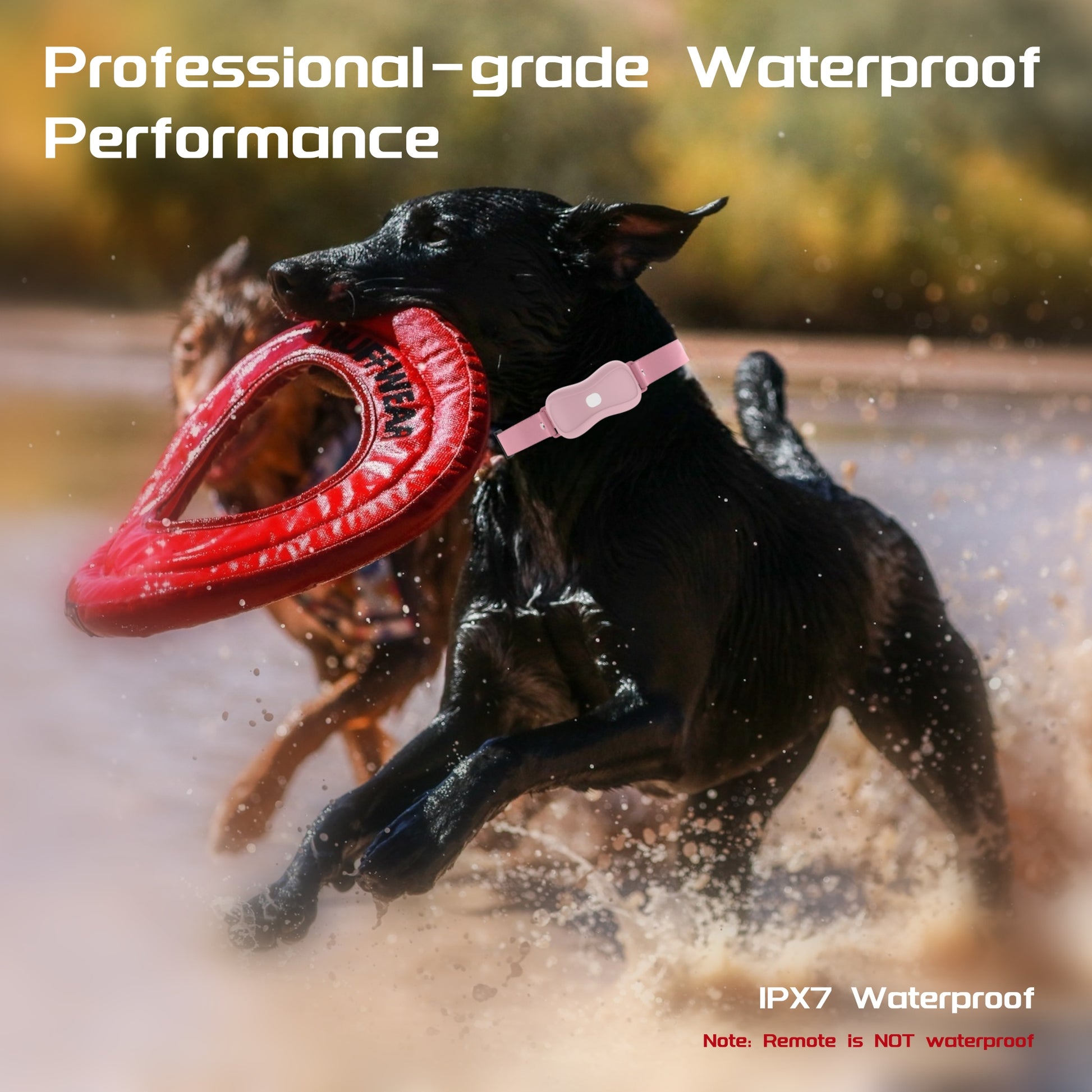 - IPX7 Waterproof: The collar is waterproof, suitable for use in rain and water, but the remote should be kept dry.