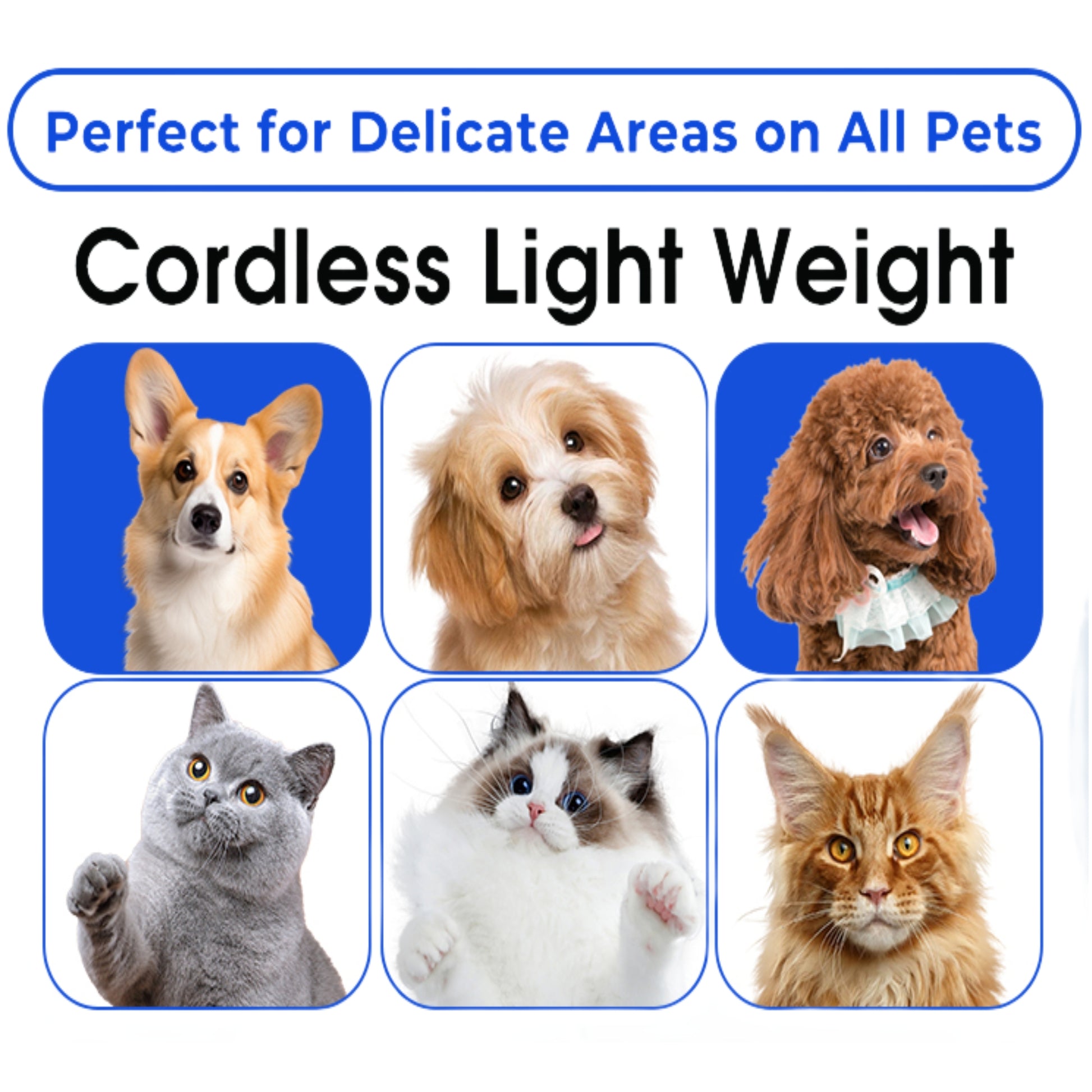- Safe and Sharp Blades: Features upgraded ceramic blades and a high-precision motor for smooth cutting. The R-shaped blade design ensures it fits close to the skin without harming the pet's pads.