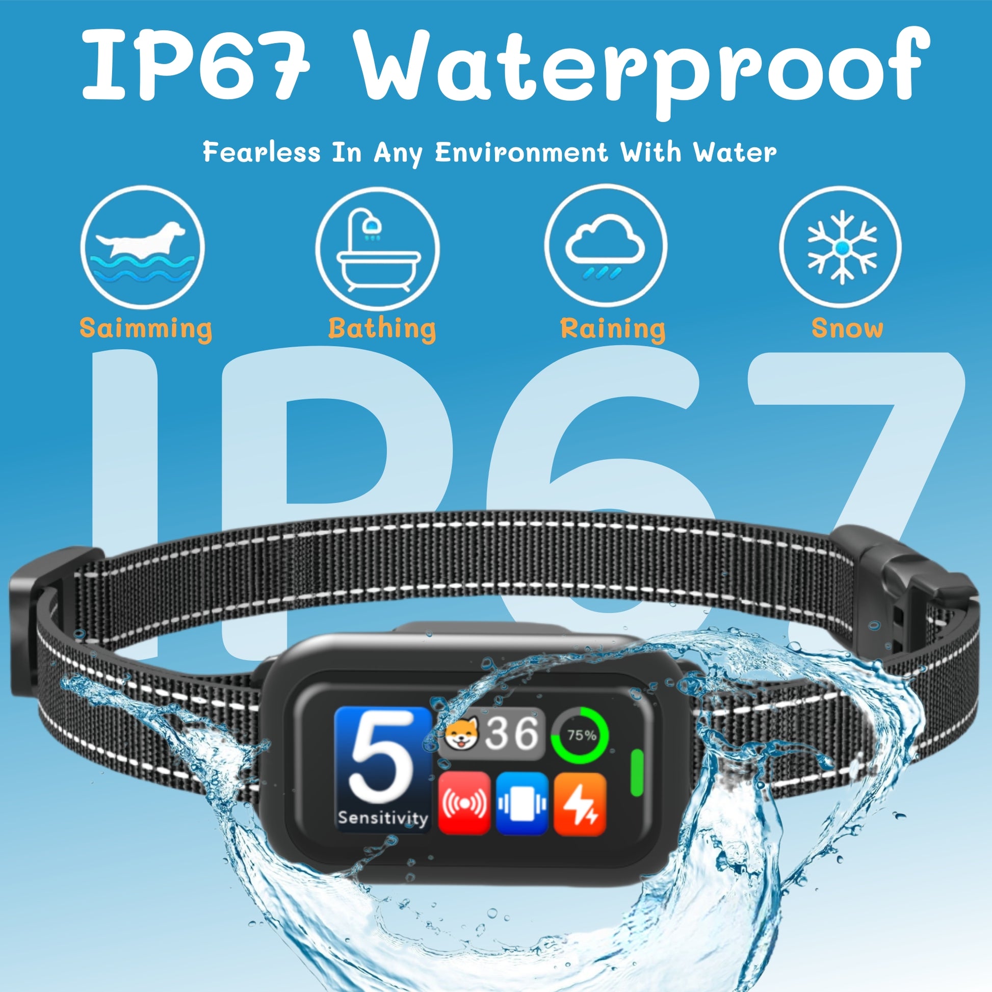 - IP67 Waterproof for All-Weather Outdoor Use: With an IP67 waterproof rating, this automatic bark collar is built for outdoor adventures. Your dog can safely wear it while playing in the rain, running near water, or during bath time. The sealed design helps protect internal components from moisture, ensuring reliable performance in various outdoor conditions.